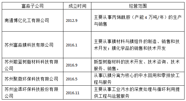 Fu Miao technology has five wholly owned or holding subsidiaries, such as Nantong Bo million Chemical Co., Suzhou rich film technology Co., Ltd., Suzhou poly Environmental Protection Technology Co., Ltd., Suzhou song blue resin Mstar Technology Ltd, Suzhou Jin canal Environmental Protection Technology Co., Ltd., etc., which is located in Fenghuang Town, Zhangjiagang. Central District, as a production function sharing service center.